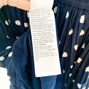 Very good preowned condition. No flaws to note. Body and lining 100% viscose. Shoulders and upper back are semi sheer, unlined, navy. The rest of the dress is polka dots and lined. Moose logo in the lower corner. Elastic waist. Cap sleeves. Hidden side zipper. Low/open back.