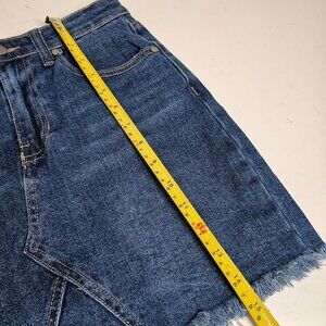 Abound Womens Mini Denim Skirt Frayed Hem Medium Wash Button Zipper Closure 25