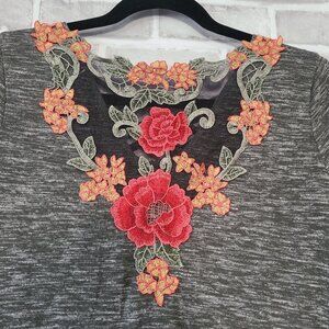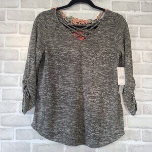 Absolutely Famous Lace Inset Olive Gray Long Sleeve Shirt Top Small NWT