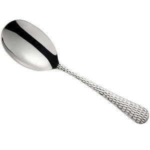 With the Acopa Industry flatware collection among your dinnerware supplies, creating an unforgettable table setting is right within reach. This serving spoon features clean, rounded lines and a stylish, hammered handle that will hide unsightly fingerprints and blemishes. It is perfect for dishing out portions of vegetables, pasta, salads, and other signature sides.