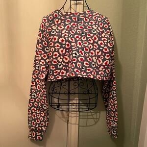 Adam Selman Cropped blue and red leopard Sweatshirt
