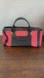 Photos include, some marks on bag, cracking on side edging, handles with cracking on edging and mark, detachable strap, bottom of bag and marks, small dark spots on pink, dust bag, card and stain on dust bag.