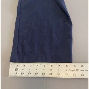 Elevate your golf game with these preowned Adidas pants in navy blue. Designed for the active occasion, these pants feature a zip closure and slash pockets for your golf essentials. The pants are made of a comfortable blend of nylon, polyester, and spandex with stretch features for a comfortable fit during your game. The flat front and straight leg style provide a classic look, while the mid-rise waist and 29.75 inch inseam ensure a perfect fit for men's size 38. These pants are machine washable and perfect for winter, fall, and spring seasons. Get ready to personalize your golf wardrobe with these Adidas Golf pants.