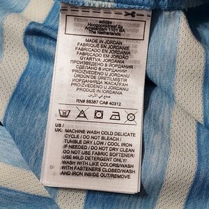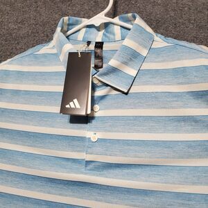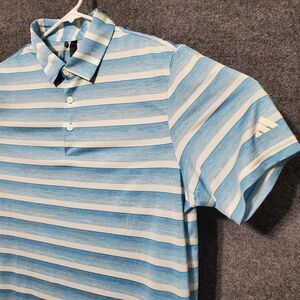 Adidas Two Color Stripe Polo Shirt Mens Medium Blue White Golf Outdoor Athletic