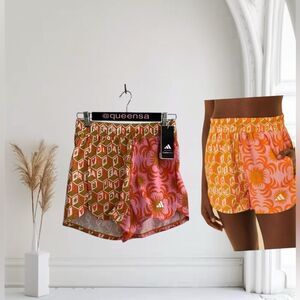 Bold geometric and floral design. Eye-catching pink and orange hues. Perfect for active wear.
