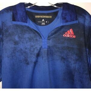 Adidas Mens Shirt Climalite Short Sleeve Hand Printed Blue Medium