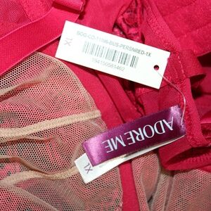 Adore Me. Hot Pink Lace Bustier Corset with Garters.. Sheer mesh and floral lace. Underwire cups for support and lift