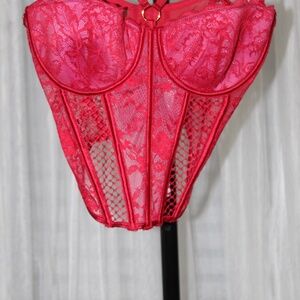 Adore Me. Red Lace Corset Bustier with Strappy Detail. Sz. 34DD