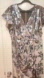 Elegant metallic formal dress. Featuring a metallic brown with metallic blue flowers. Has a V-neckline, thigh high slit and zipper. Dress is in excellent condition. Worn once for an indoor wedding. Approximate measurements are: