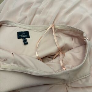 This stunning Adrianna Papell gown features a soft pink hue and a chic one-shoulder neckline, perfect for wedding guests. The sleeveless design and flowing full-length skirt create an elegant silhouette, while the fitted bodice adds a touch of sophistication.