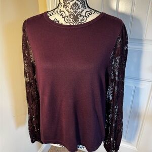 Dark burgundy Adrianna Papell sweater with lace sleeves with elastic, NWT, smoke free home.