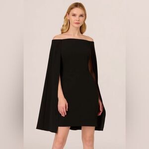 Adrianna Papell Women's Off-The-Shoulder Cape Dress Black size 4 NWT $169