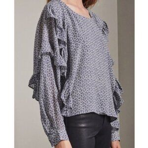 Adriano Goldschmied Womens Ruffle Sleeve Printed Blouse Small Silk/Viscose Soft