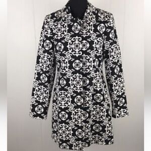 Adrienne Vittadini Midi Trench Coat Black White Button Front