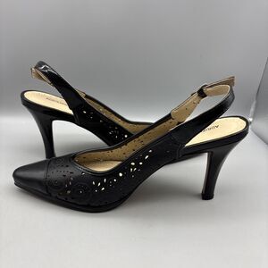Adrienne Vittadini Pumps Women's Size 7.5 M Black Leather Jiante Ankle Strap