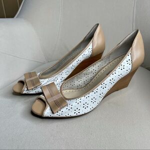 Adrienne vittadini Wedge Shoes Size 8 M Floral Leather Wedge Perforated.