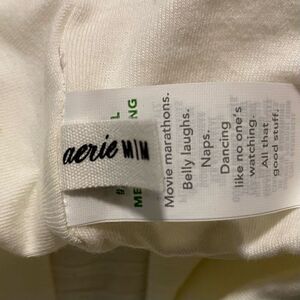 Aerie white ribbed crop top bralette with lace appliqué back detail.