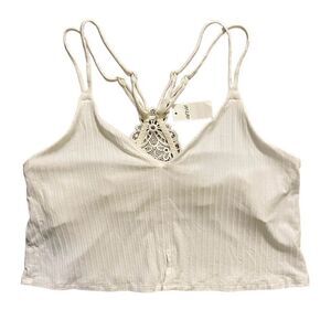 Aerie White Ribbed Lace Appliqué Back Crop Top Bralette NWT Size Medium