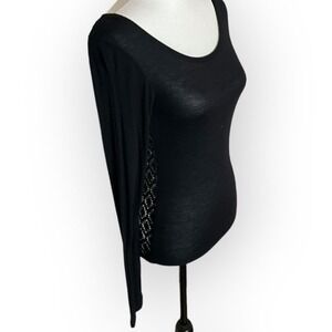 Aeropostale Stretch Woven Pointelle Back Long Sleeve Crewneck Tee Size S
