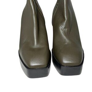 Aeyde Berlin Square Toe High Heel Platform Booties Women's 40/9 Olive NEW