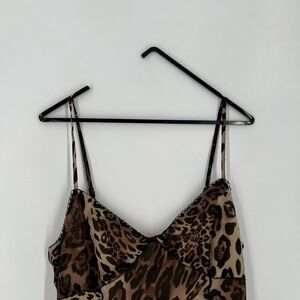 Afternoon Shop Leopard Animal Print Bandeau Side Slits Slip Midi Slinky Dress