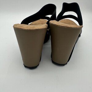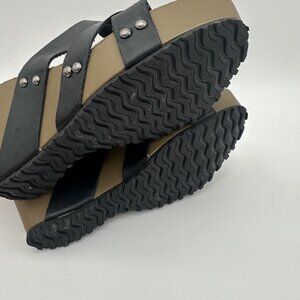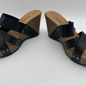 Agape Womens Black Strappy Wedge Sandals 6.5 With Stud Accents & Sturdy Sole