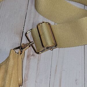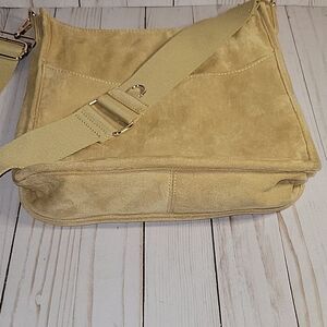 Ah dorned Messenger Crossbody Bag Faux Suede Light Tan Camel Guitar Strap