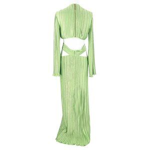 Aiifos Philipa Pleated Long Sleeve Cut Out Gown in Jade Green