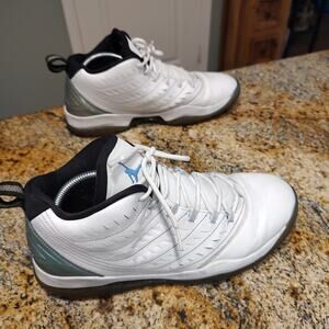 Condition: These Air Jordan 11 Retro Sneakers are in used condition with some signs of wear, including minor scuffs on the toe and creasing on the upper. The soles are intact with good tread.Features: The sneakers feature a classic white and black colorway with a hint of blue accents. The iconic Jumpman logo is present on the tongue and heel, showcasing their authenticity.Measurements: The sneakers are size 12 US, which corresponds to UK 11 and EUR 46. The length of the insole measures approximately 30 cm.Visible Text: The label inside the shoe includes the model number 688975-117, made in Vietnam, and the production date of 09/13/14. The UPC code is 00823233564183.