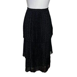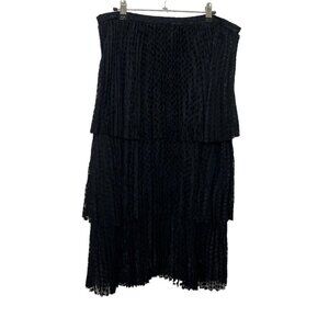 Akris Punto Dot Devore Midi Skirt Black Women’s Size 12 Pleated Tiered