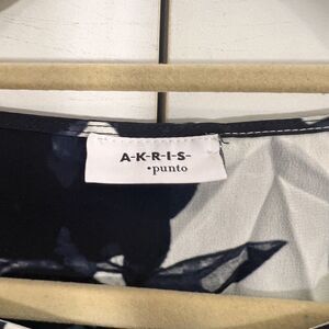 Akris Punto Mulberry Silk Top Size 4 Floral Roll Tab Sleeve Boat Neck Abstract