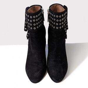 Alaïa Black Suede Grommet Embellished Ruffled Ankle Boots | Size 38.5