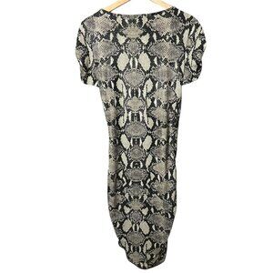 Alberto Makali Python Print Ruched Faux Wrap Bodycon Knee Length Dress in Beige