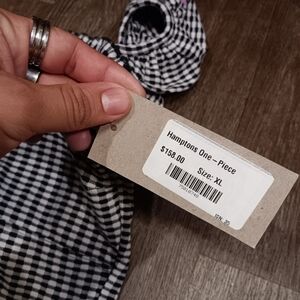 Chic one-piece with classic checkered pattern. Features elegant design for stylish swimwear.