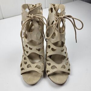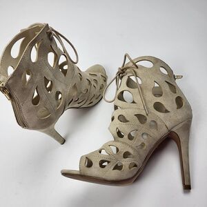 Aldo Tan Suede Laser-Cut Peep Toe Heels, Size 6.5
