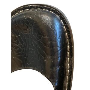 These Alegria dress shoes in black feature a classic Mary Jane design with a glossy leather finish. The single strap with a decorative closure adds a touch of elegance, while the sturdy sole ensures comfort for any occasion. Good condition some scratches on toe. See pictures.
