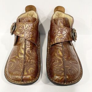 Alegria by PG Lite Shoes Brown Caiti Floral Embossed Leather Ankle Bootie Sz 6