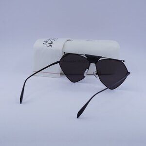 Alexander McQueen AM0317S 001 Sunglasses Black Geometric Frame, Grey Lenses