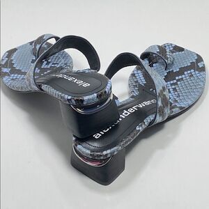 Crafted of rich snake-embossed leather, these toe-loop mules are set atop an angled block heel.