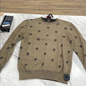 Brown skull printed crewneck by Alexander McQueen.