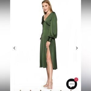 EUC worn once Alexia Admor Alysa emerald green long sleeve satin midi dress side slit 6 cocktail