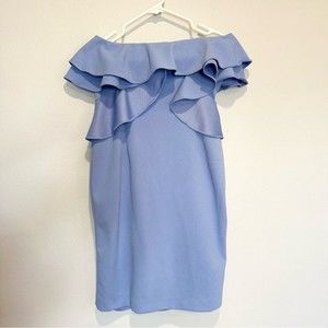 Alexia Admor Lia Ruffle Strapless Sheath Dress, Baby Blue, Size 2