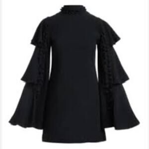 Alexis Black Marianne Tiered Bell-Sleeve Crepe Mini Dress Ruffled Trim Small