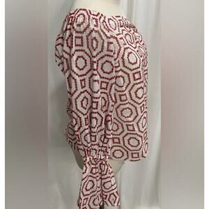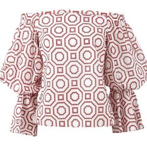 Alexis Micael Eyelet Off Shoulder embroidered Top White / Red Sz Med Designer.