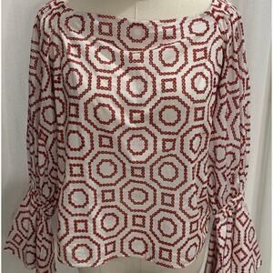 Alexis Micael Red White Eyelet Embroidered Off The Shoulder Bell Sleeve Top Med