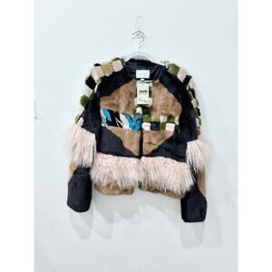 Alexis Patchwork Kotto Lined Plush Faux Fur Jacket Multicolor Women's Size Large