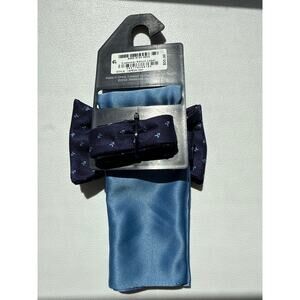 Alfani NWT Bow Tie & Pocket Square Navy Blue