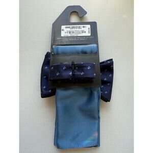 NWT Alfani, bowtie and pocket square navy blue light blue color new with tag.
