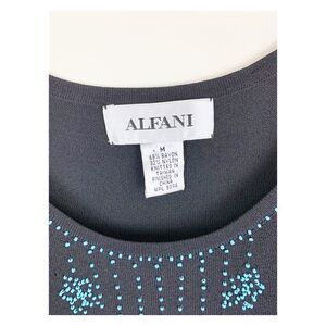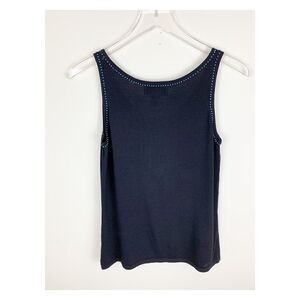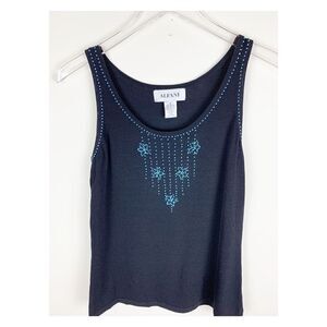 Alfani Black Knit Tank w/Turquoise Seed Beading Sz M EUC. Nice substantial feel and drape with seed bead details on front, around neck and armholes. Wear by itself in warmer weather and layer with a jacket for colder times. Please see photos for additional details.