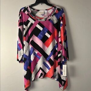 Alfred Dunner Dunner Asymmetric Women’s Top Tunic 3/4 Sleeve Size 3XL NWT